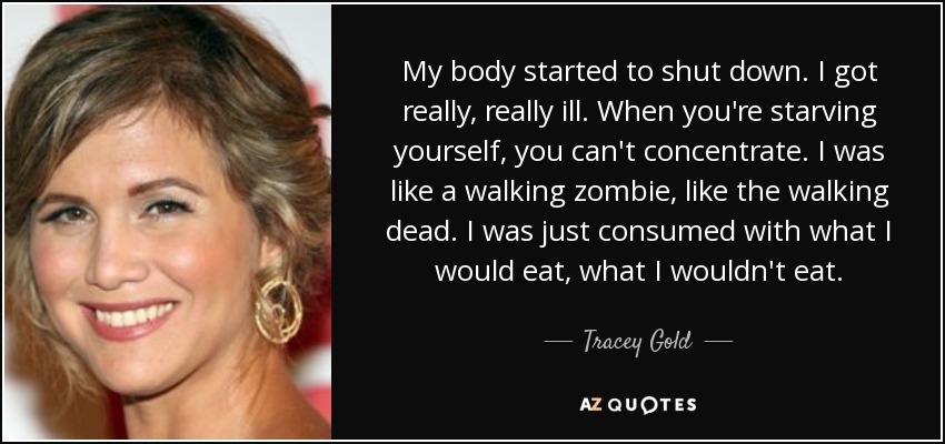 My body started to shut down. I got really, really ill. When you're starving yourself, you can't concentrate. I was like a walking zombie, like the walking dead. I was just consumed with what I would eat, what I wouldn't eat.
