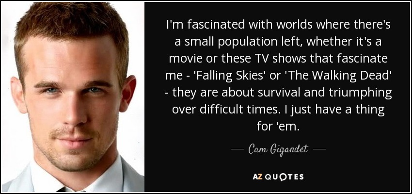 I'm fascinated with worlds where there's a small population left, whether it's a movie or these TV shows that fascinate me - 'Falling Skies' or 'The Walking Dead' - they are about survival and triumphing over difficult times. I just have a thing for 'em.
