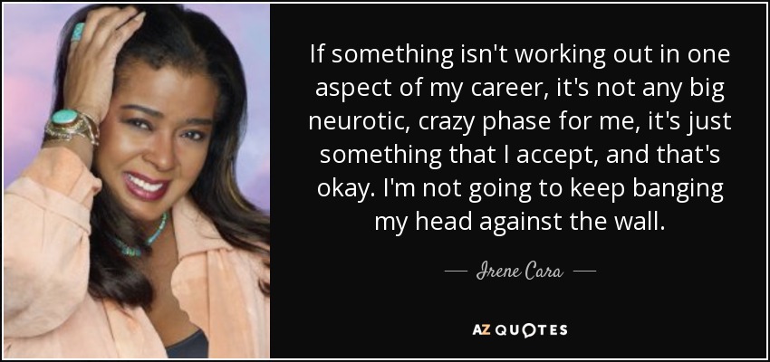 If something isn't working out in one aspect of my career, it's not any big neurotic, crazy phase for me, it's just something that I accept, and that's okay. I'm not going to keep banging my head against the wall.