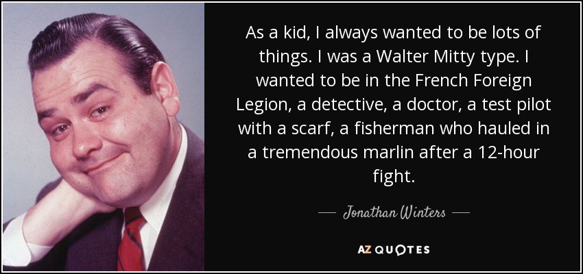 As a kid, I always wanted to be lots of things. I was a Walter Mitty type. I wanted to be in the French Foreign Legion, a detective, a doctor, a test pilot with a scarf, a fisherman who hauled in a tremendous marlin after a 12-hour fight.