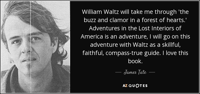 William Waltz will take me through 'the buzz and clamor in a forest of hearts.' Adventures in the Lost Interiors of America is an adventure, I will go on this adventure with Waltz as a skillful, faithful, compass-true guide. I love this book.