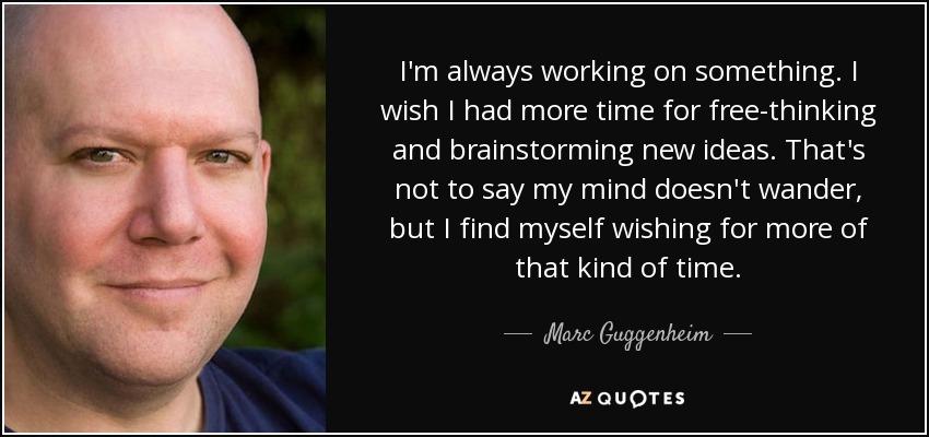 I'm always working on something. I wish I had more time for free-thinking and brainstorming new ideas. That's not to say my mind doesn't wander, but I find myself wishing for more of that kind of time.