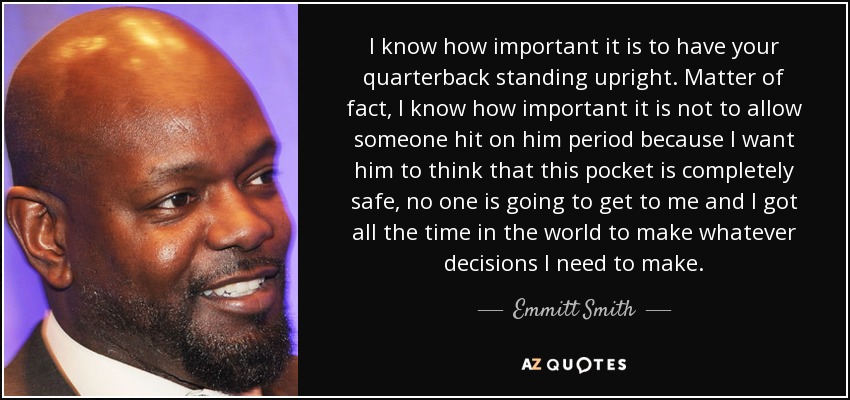I know how important it is to have your quarterback standing upright. Matter of fact, I know how important it is not to allow someone hit on him period because I want him to think that this pocket is completely safe, no one is going to get to me and I got all the time in the world to make whatever decisions I need to make.