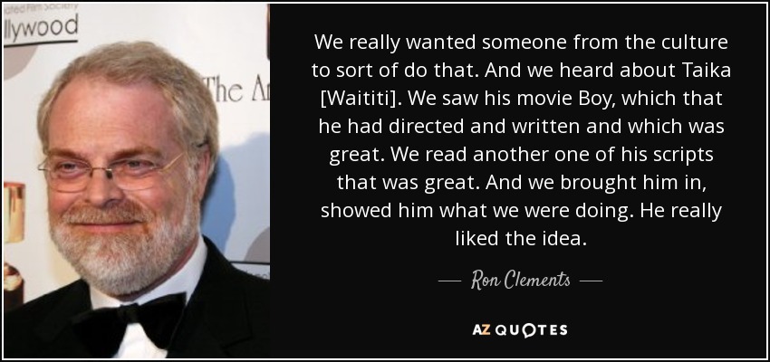 We really wanted someone from the culture to sort of do that. And we heard about Taika [Waititi]. We saw his movie Boy, which that he had directed and written and which was great. We read another one of his scripts that was great. And we brought him in, showed him what we were doing. He really liked the idea.