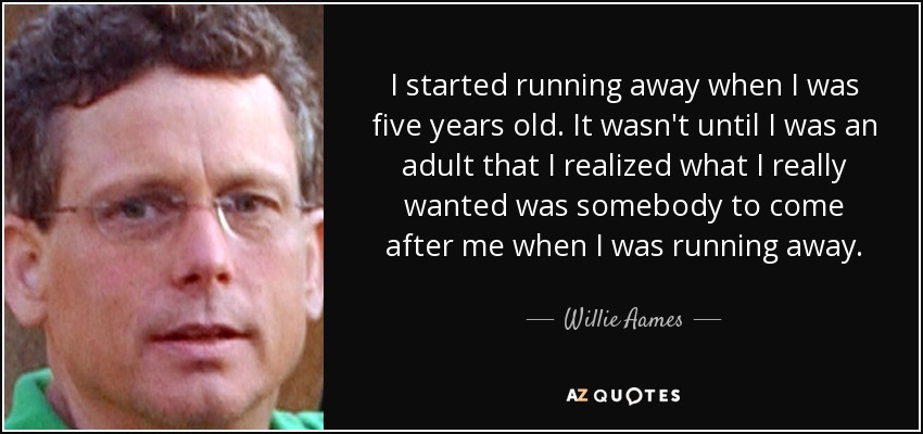 I started running away when I was five years old. It wasn't until I was an adult that I realized what I really wanted was somebody to come after me when I was running away.