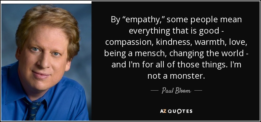 By “empathy,” some people mean everything that is good - compassion, kindness, warmth, love, being a mensch, changing the world - and I'm for all of those things. I'm not a monster.