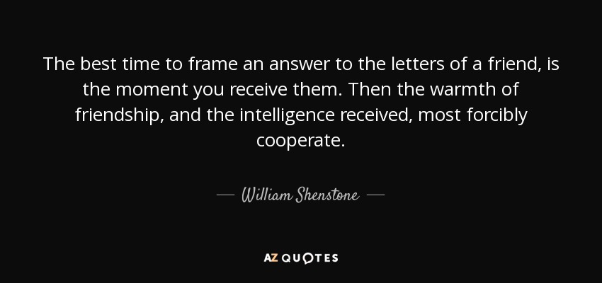 The best time to frame an answer to the letters of a friend, is the moment you receive them. Then the warmth of friendship, and the intelligence received, most forcibly cooperate.