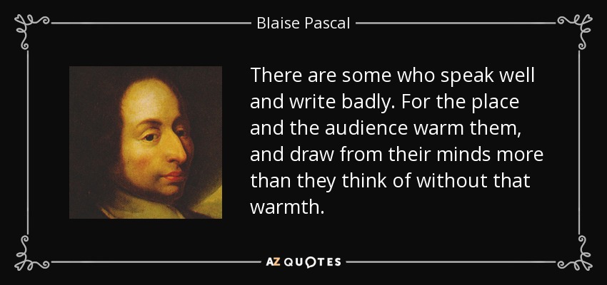 There are some who speak well and write badly. For the place and the audience warm them, and draw from their minds more than they think of without that warmth.