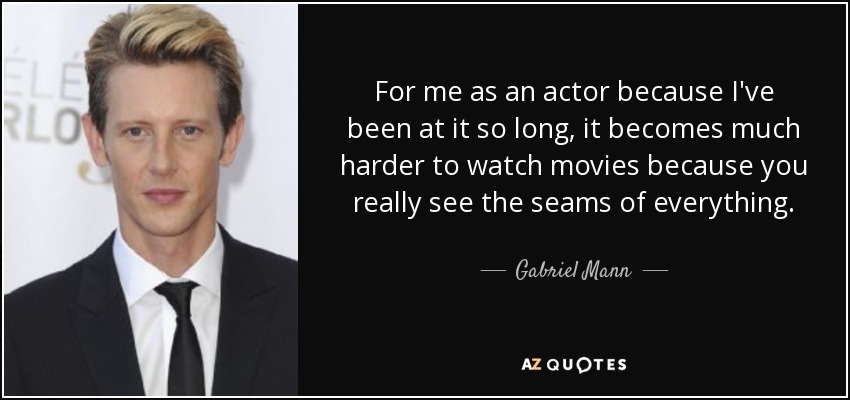 For me as an actor because I've been at it so long, it becomes much harder to watch movies because you really see the seams of everything.