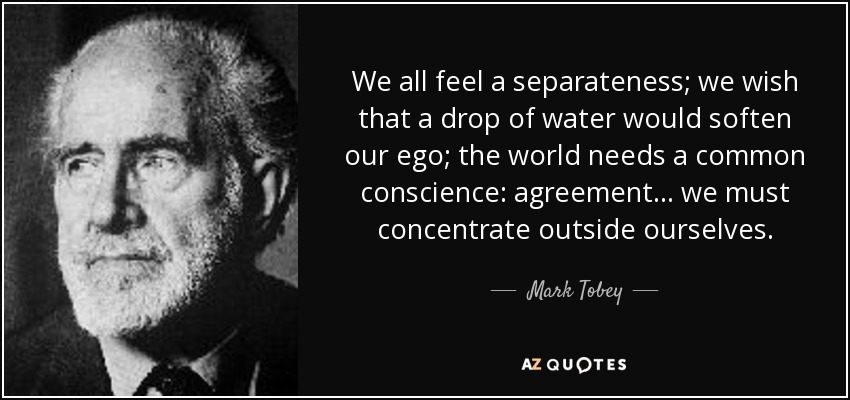 We all feel a separateness; we wish that a drop of water would soften our ego; the world needs a common conscience: agreement... we must concentrate outside ourselves.