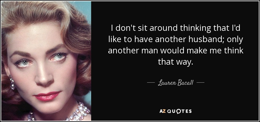 I don't sit around thinking that I'd like to have another husband; only another man would make me think that way.