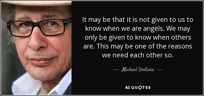 It may be that it is not given to us to know when we are angels. We may only be given to know when others are. This may be one of the reasons we need each other so.