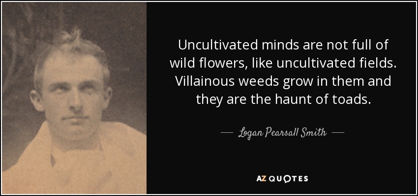 Uncultivated minds are not full of wild flowers, like uncultivated fields. Villainous weeds grow in them and they are the haunt of toads.