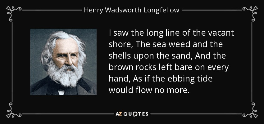 I saw the long line of the vacant shore, The sea-weed and the shells upon the sand, And the brown rocks left bare on every hand, As if the ebbing tide would flow no more.