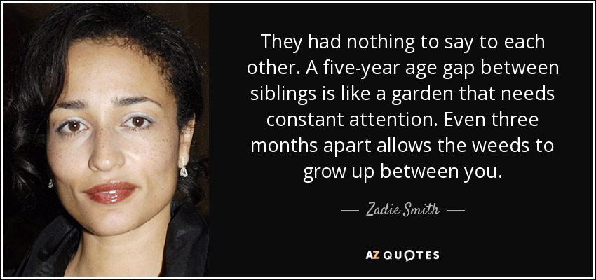 They had nothing to say to each other. A five-year age gap between siblings is like a garden that needs constant attention. Even three months apart allows the weeds to grow up between you.