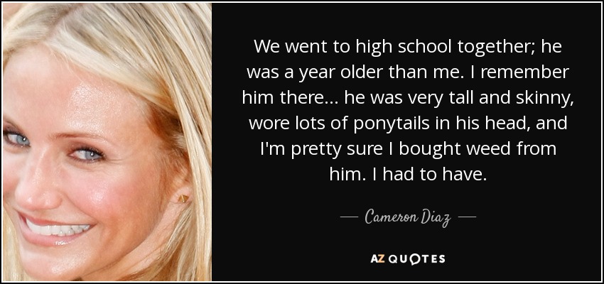 We went to high school together; he was a year older than me. I remember him there . . . he was very tall and skinny, wore lots of ponytails in his head, and I'm pretty sure I bought weed from him. I had to have.