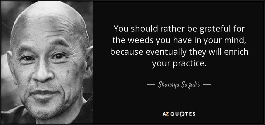 You should rather be grateful for the weeds you have in your mind, because eventually they will enrich your practice.