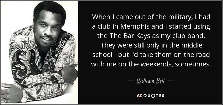 When I came out of the military, I had a club in Memphis and I started using the The Bar Kays as my club band. They were still only in the middle school - but I'd take them on the road with me on the weekends, sometimes.