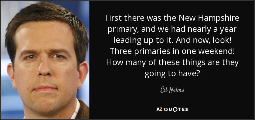 First there was the New Hampshire primary, and we had nearly a year leading up to it. And now, look! Three primaries in one weekend! How many of these things are they going to have?