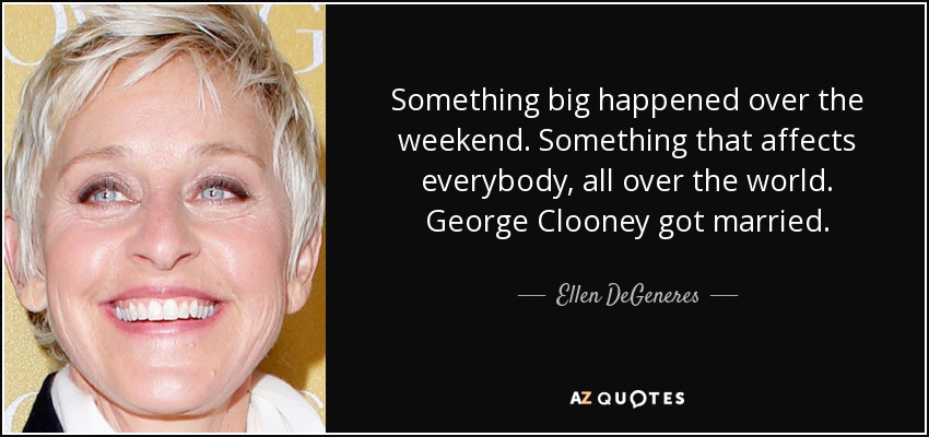 Something big happened over the weekend. Something that affects everybody, all over the world. George Clooney got married.