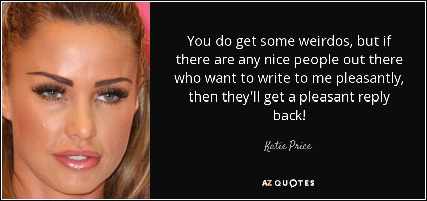 You do get some weirdos, but if there are any nice people out there who want to write to me pleasantly, then they'll get a pleasant reply back!