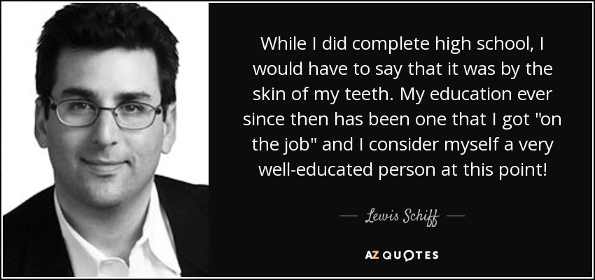 While I did complete high school, I would have to say that it was by the skin of my teeth. My education ever since then has been one that I got "on the job" and I consider myself a very well-educated person at this point!