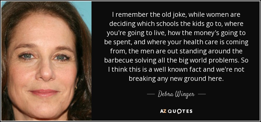 I remember the old joke, while women are deciding which schools the kids go to, where you're going to live, how the money's going to be spent, and where your health care is coming from, the men are out standing around the barbecue solving all the big world problems. So I think this is a well known fact and we're not breaking any new ground here.