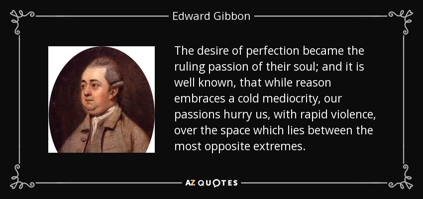 The desire of perfection became the ruling passion of their soul; and it is well known, that while reason embraces a cold mediocrity, our passions hurry us, with rapid violence, over the space which lies between the most opposite extremes.
