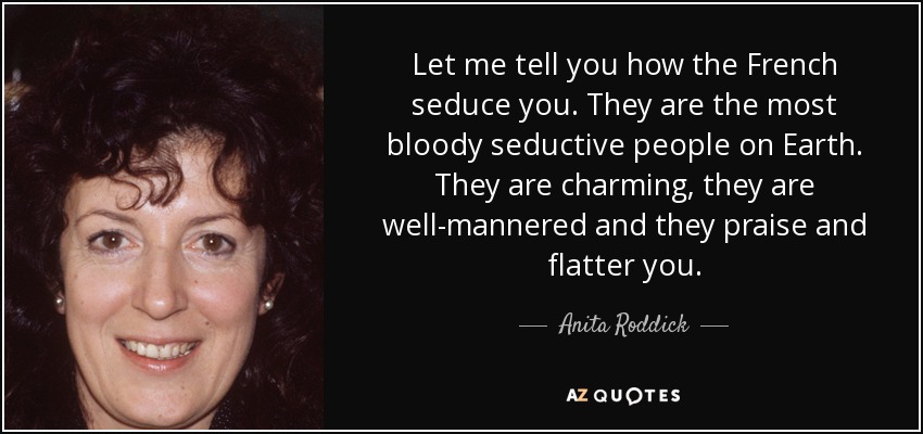 Let me tell you how the French seduce you. They are the most bloody seductive people on Earth. They are charming, they are well-mannered and they praise and flatter you.
