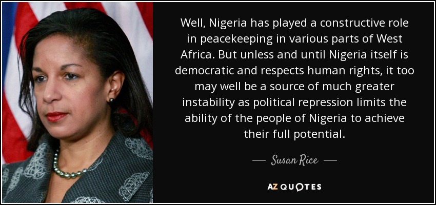 Well, Nigeria has played a constructive role in peacekeeping in various parts of West Africa. But unless and until Nigeria itself is democratic and respects human rights, it too may well be a source of much greater instability as political repression limits the ability of the people of Nigeria to achieve their full potential.