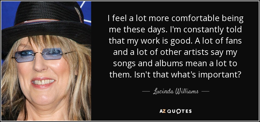 I feel a lot more comfortable being me these days. I'm constantly told that my work is good. A lot of fans and a lot of other artists say my songs and albums mean a lot to them. Isn't that what's important?