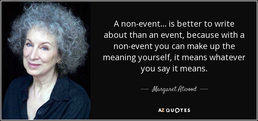 A non-event ... is better to write about than an event, because with a non-event you can make up the meaning yourself, it means whatever you say it means.