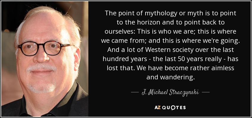 The point of mythology or myth is to point to the horizon and to point back to ourselves: This is who we are; this is where we came from; and this is where we're going. And a lot of Western society over the last hundred years - the last 50 years really - has lost that. We have become rather aimless and wandering.