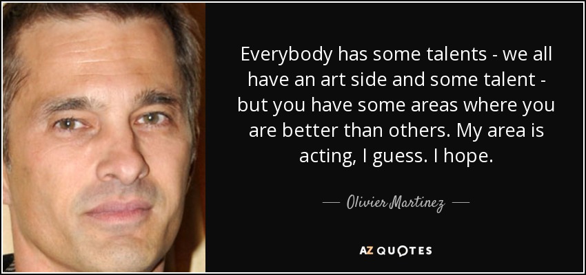 Everybody has some talents - we all have an art side and some talent - but you have some areas where you are better than others. My area is acting, I guess. I hope.