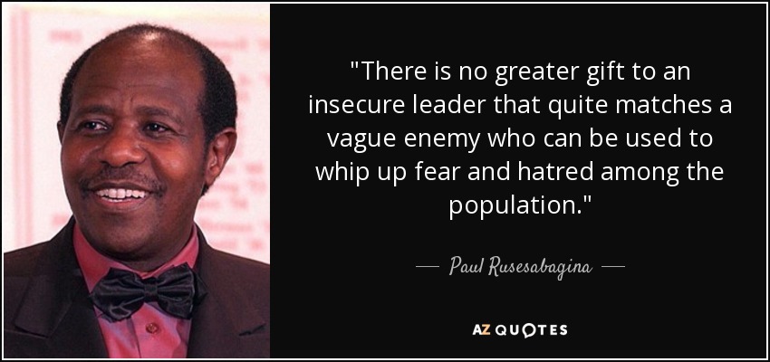 "There is no greater gift to an insecure leader that quite matches a vague enemy who can be used to whip up fear and hatred among the population."