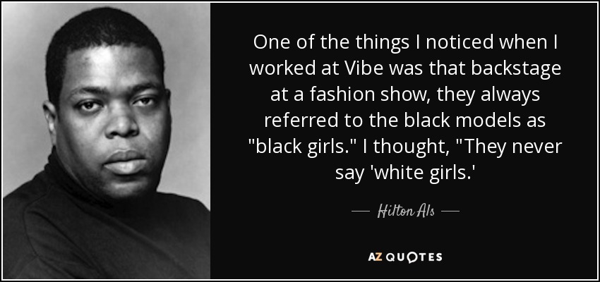 One of the things I noticed when I worked at Vibe was that backstage at a fashion show, they always referred to the black models as "black girls." I thought, "They never say 'white girls.'