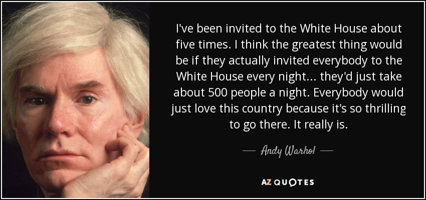 I've been invited to the White House about five times. I think the greatest thing would be if they actually invited everybody to the White House every night... they'd just take about 500 people a night. Everybody would just love this country because it's so thrilling to go there. It really is.