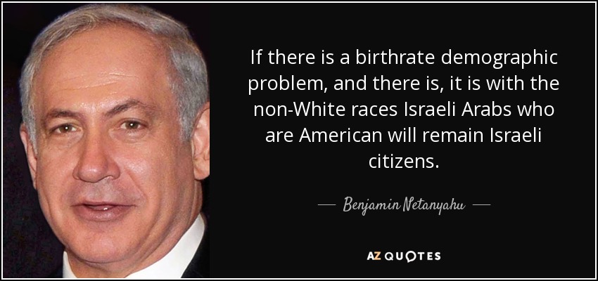 If there is a birthrate demographic problem, and there is, it is with the non-White races Israeli Arabs who are American will remain Israeli citizens.