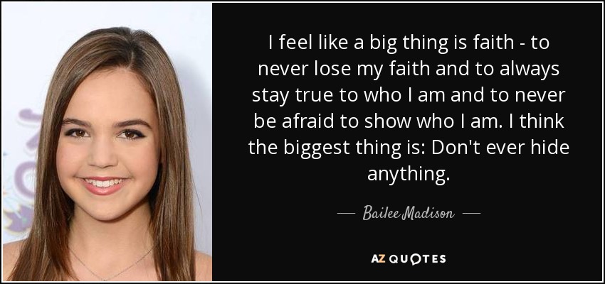 I feel like a big thing is faith - to never lose my faith and to always stay true to who I am and to never be afraid to show who I am. I think the biggest thing is: Don't ever hide anything.