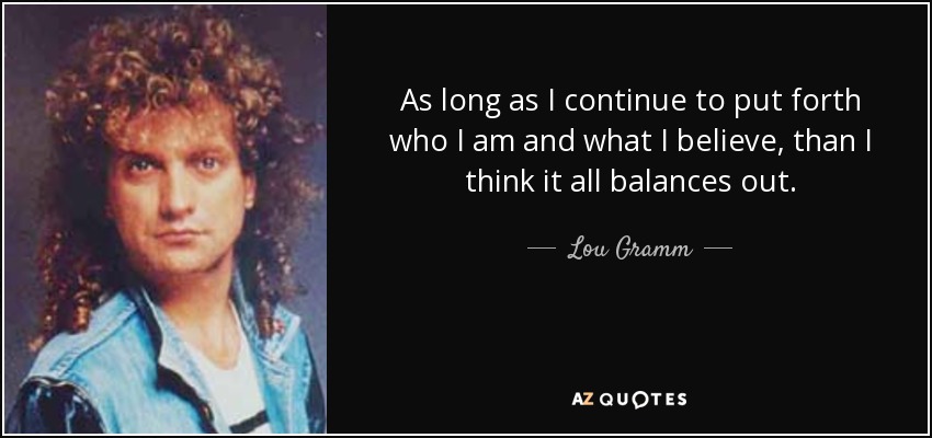 As long as I continue to put forth who I am and what I believe, than I think it all balances out.