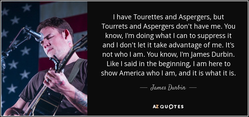 I have Tourettes and Aspergers, but Tourrets and Aspergers don't have me. You know, I'm doing what I can to suppress it and I don't let it take advantage of me. It's not who I am. You know, I'm James Durbin. Like I said in the beginning, I am here to show America who I am, and it is what it is.