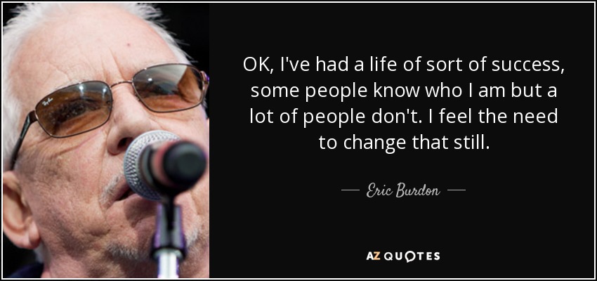 OK, I've had a life of sort of success, some people know who I am but a lot of people don't. I feel the need to change that still.
