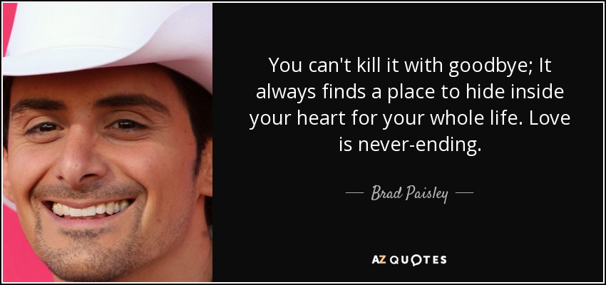 You can't kill it with goodbye; It always finds a place to hide inside your heart for your whole life. Love is never-ending.