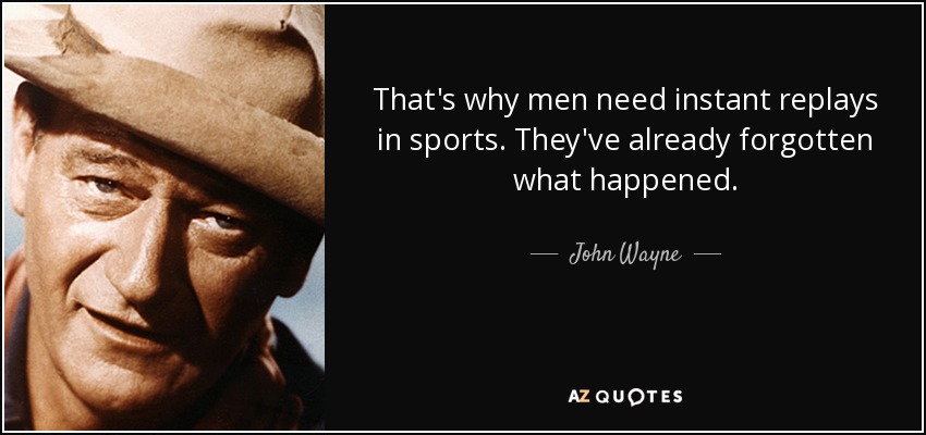 That's why men need instant replays in sports. They've already forgotten what happened.
