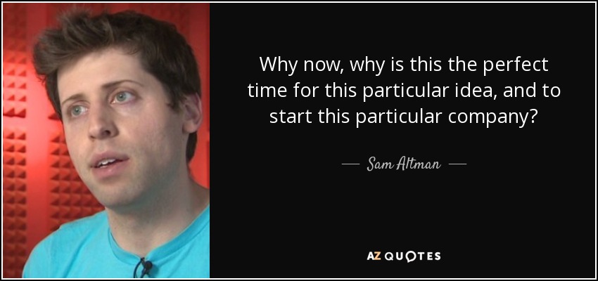 Why now, why is this the perfect time for this particular idea, and to start this particular company?