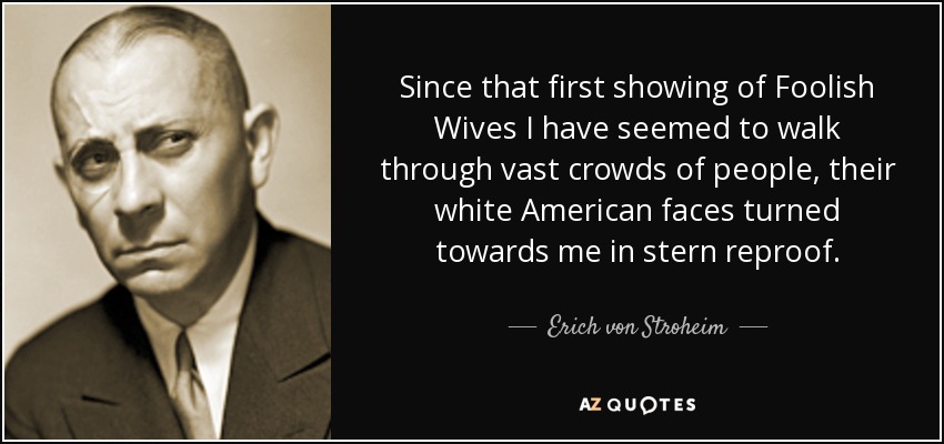 Since that first showing of Foolish Wives I have seemed to walk through vast crowds of people, their white American faces turned towards me in stern reproof.