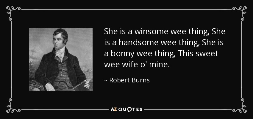 She is a winsome wee thing, She is a handsome wee thing, She is a bonny wee thing, This sweet wee wife o' mine.