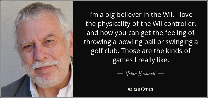 I'm a big believer in the Wii. I love the physicality of the Wii controller, and how you can get the feeling of throwing a bowling ball or swinging a golf club. Those are the kinds of games I really like.