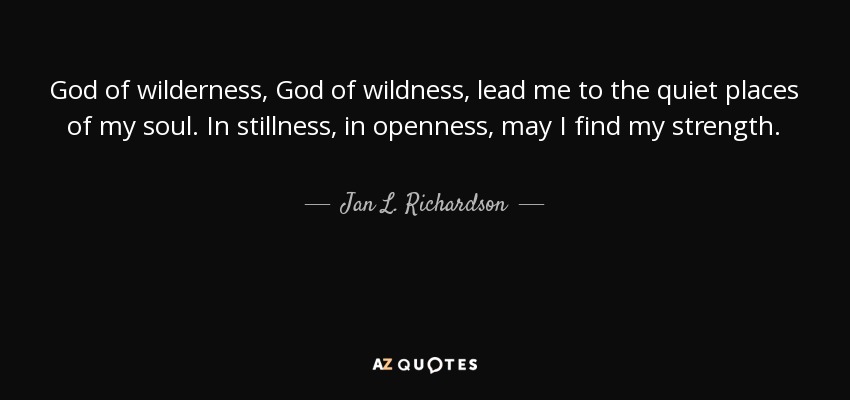 God of wilderness, God of wildness, lead me to the quiet places of my soul. In stillness, in openness, may I find my strength.