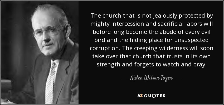 The church that is not jealously protected by mighty intercession and sacrificial labors will before long become the abode of every evil bird and the hiding place for unsuspected corruption. The creeping wilderness will soon take over that church that trusts in its own strength and forgets to watch and pray.